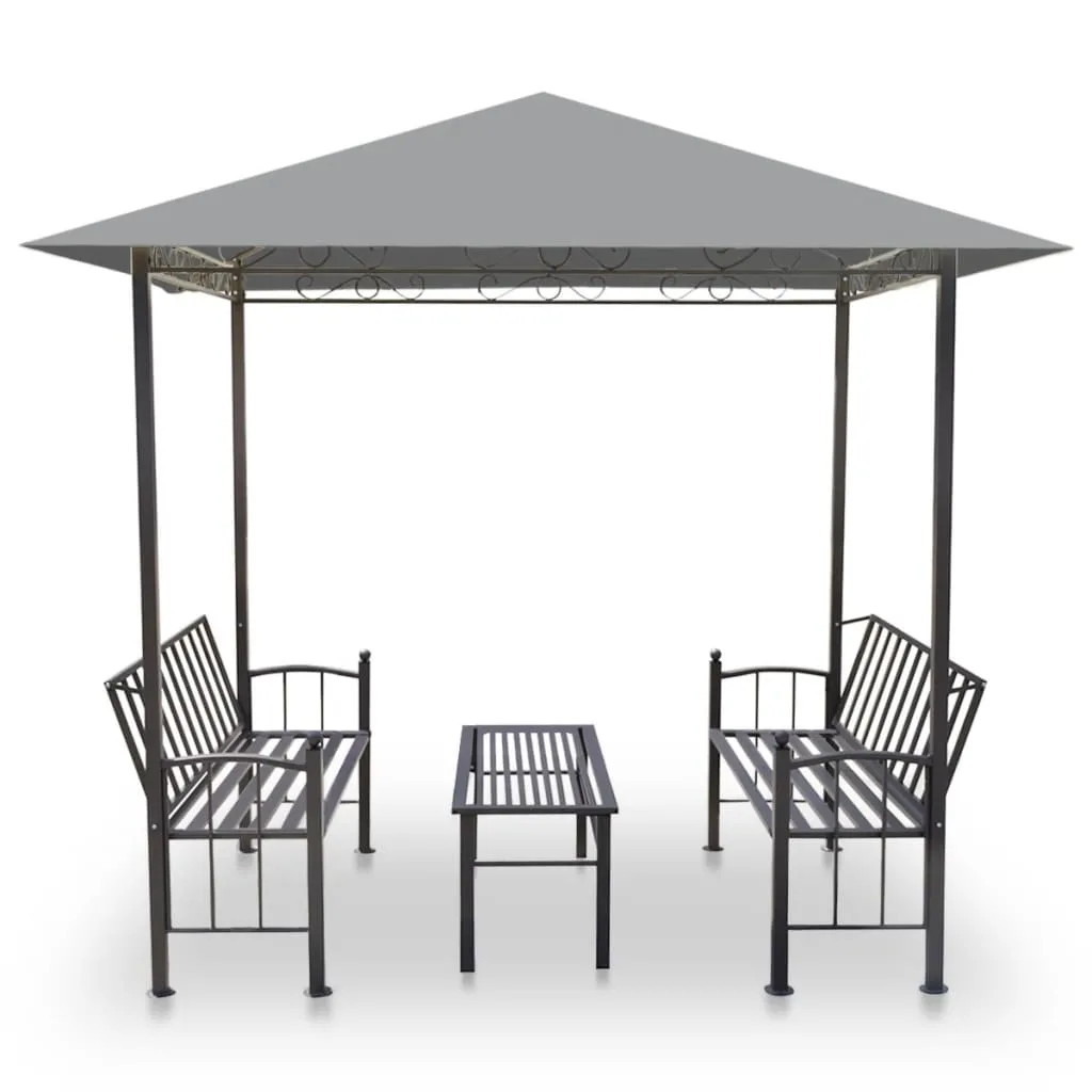 Komplekt koosneb tugeva terasraamiga paviljonist ning veekindlast ja UV-kaitsega tugevdatud nurkadega varikatusest, hoised teid ja teie külalisi päikese eest jahedas. Pingid ja käepärane teelaud on samuti terasest ja väga vastupidavad. Pingi kergelt kaldus seljatoed tagavad mugava istumise. Räästas kumer kaunistus annab tornile elegantse võlu.