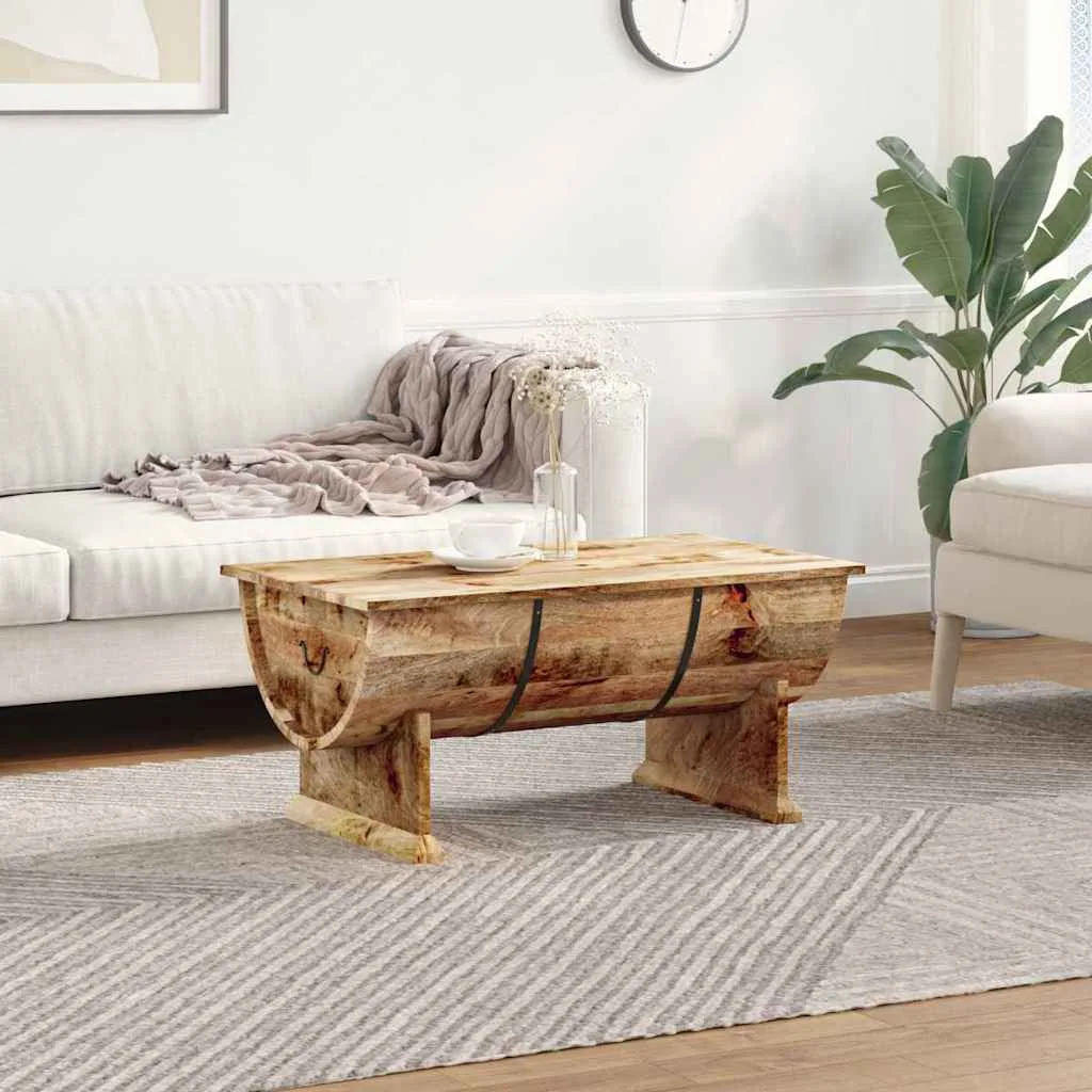 This sturdy mango wood coffee table exudes a retro charm and will add a stylish touch to your interior design. The variations in grain and color give the coffee table a unique touch.