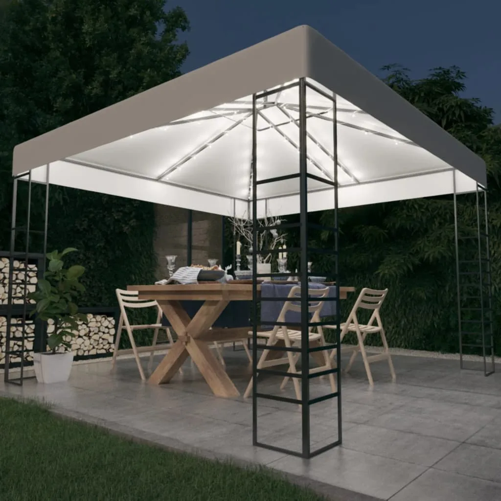 Raam on tänu teraskonstruktsioonile tugev ja stabiilne ning 100% polüestrist katust on töödeldud polüamiidkattega, et teid kahjuliku UV-kiirguse ja vihma eest kaitsta. Stiilne topeltventilatsiooniga disain parandab õhuringlust ja lisab mugavust. Lisaks loob nöörvalgustite valgus päikeseloojangul aias hubase atmosfääri. Tuled ei tekita keskkonnareostust, kuna seda laeb päeva jooksul päikeseenergia.