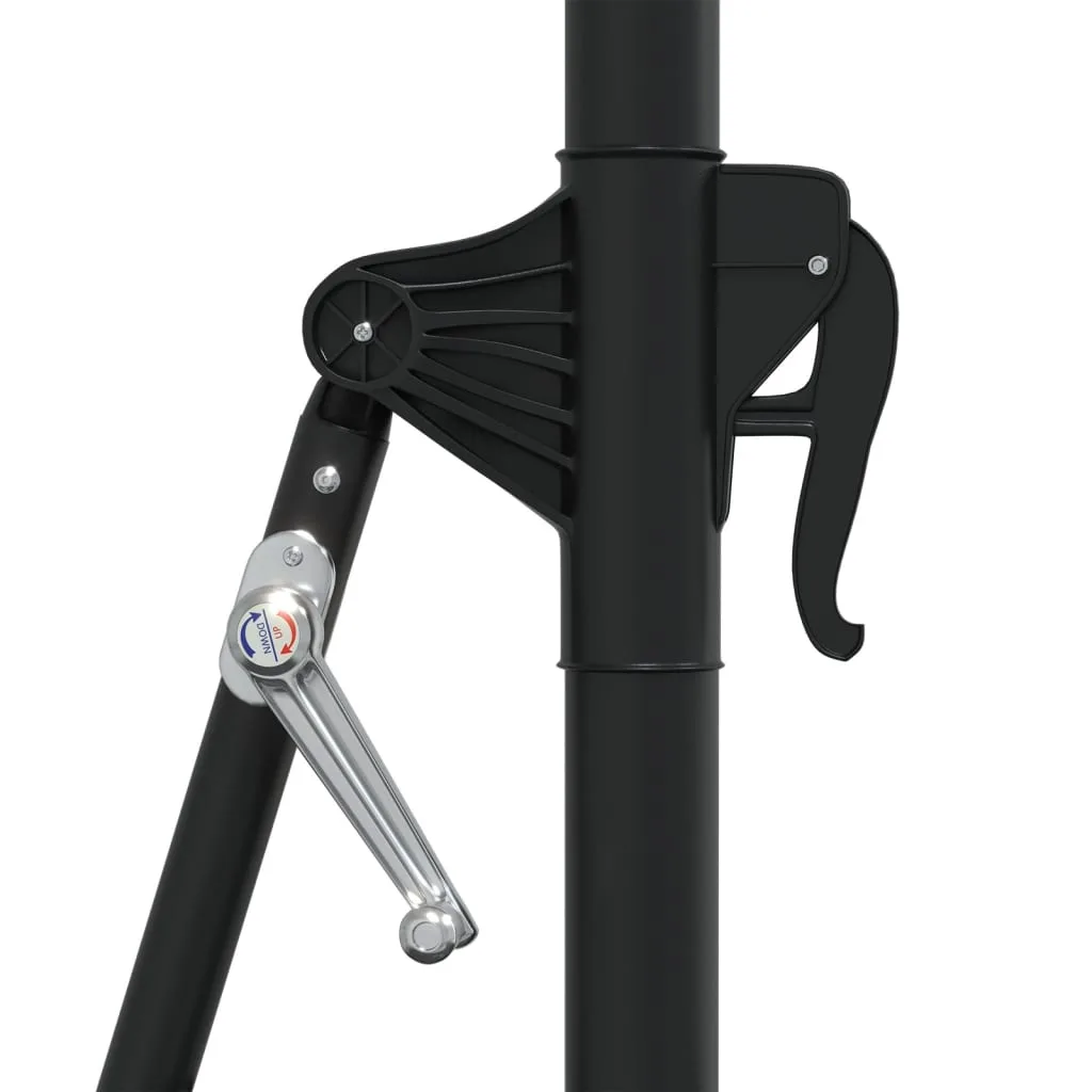 UV-kindel ja mittetuhmuvast polüestrist päikesevari tagab optimaalse kaitse päikese eest ja seda on lihtne puhastada. Päikesevarju eksklusiivne disain võimaldab päikesevarju kallutada, et blokeerida päikest, kui see loojuma hakkab. Kaheksa vastupidava ribiga tugev metallpost muudab päikesevarju väga stabiilseks ja vastupidavaks. Päikesevarju saab tänu vändamehhanismile kergesti avada ja sulgeda. Toodet on lihtne kokku panna. Komplekti kuuluvad paigaldustarvikud.