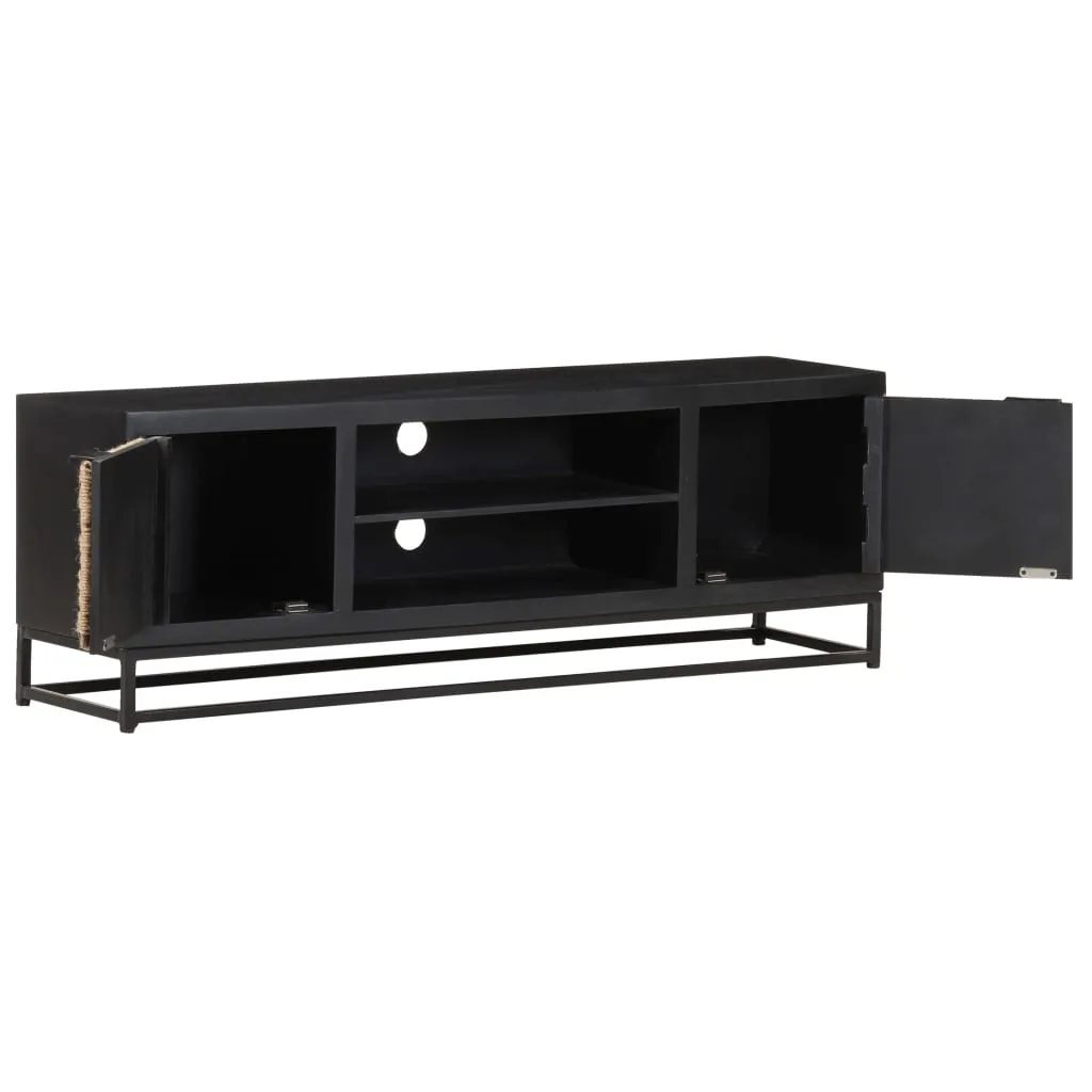 - Material: Mango wood with black finish, powder-coated iron with black finish, jute