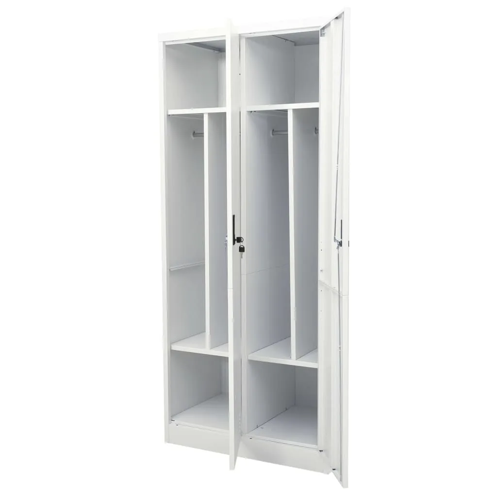 The wardrobe is made of steel, which makes it durable and easy to clean. It has 2 shelves and 2 locks. The wardrobe has large compartments that provide enough space for both longer clothes and folded clothes and accessories such as sweaters, jeans, hats, handbags, etc.