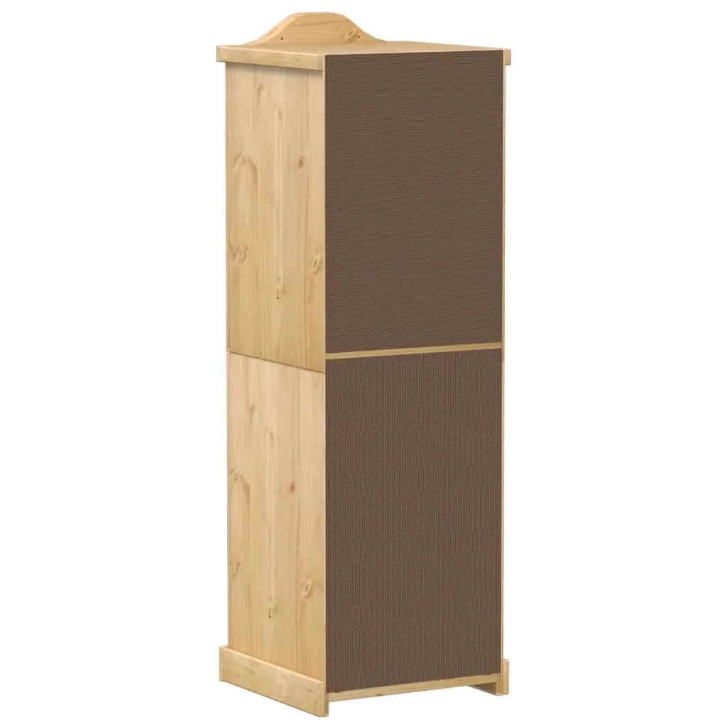 - Pine: pine is a beautiful natural material. Pine has straight fibres and the knots give the material a rustic look. Pinewood has straight fibres and knots, giving the material a rustic look. Made of solid pine wood, this storage cabinet is durable and strong.