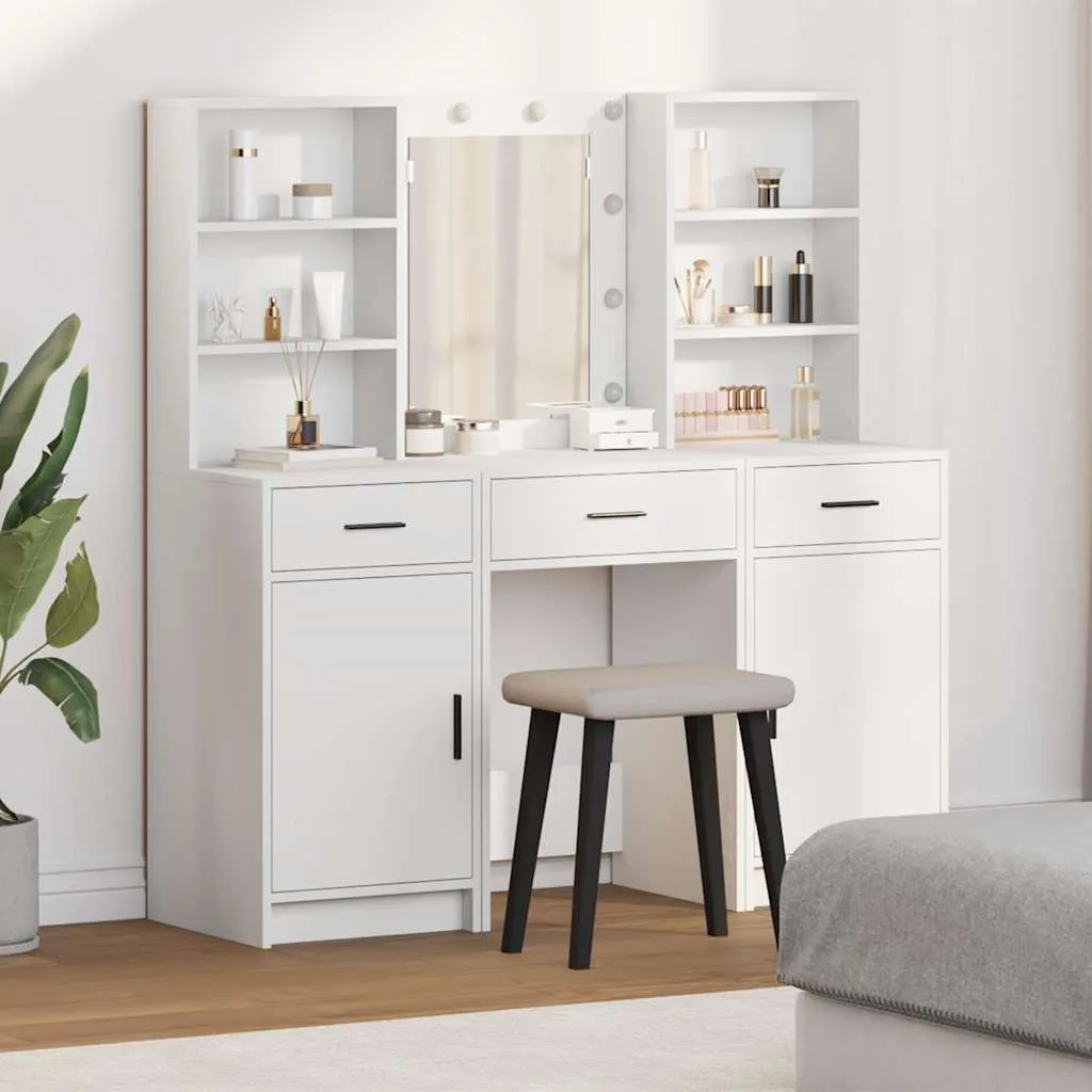 - Tõhus hoiulahendus: Komplekt sisaldab mitmeid riiuleid ja sahtlitega piisavalt ruumi, et hoida asjad organiseerituna. Uksed ja sahtlid pakuvad lihtsat ja kiiret ligipääsu, hoides korras ja puhta ruumi. Nutikas jagamine aitab hoida iluhooldamise ala segamatuna.