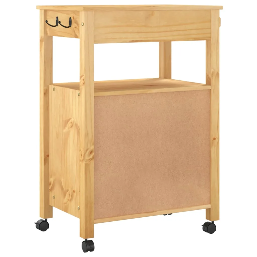 • Vastupidav materjal: männipuit on ilus looduslik materjal. Männipuidul on sirged kiud ja oksakohad annavad materjalile maalähedase ilme. Männipuidust valmistatud köögi hoiukäru on vastupidav ja tugev.