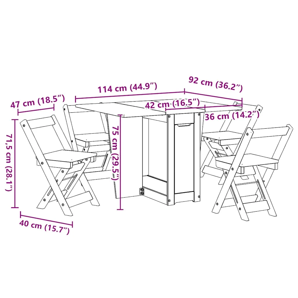 - Pikendatav ja kokkupandav: laual on kokkupandav ja pikendatav allakäiva lehtedega lauaplaat, mis annab vajadusel lisaruumi ja on hõlpsasti kokkuklapitav, kui seda ei kasutata. Toolid on samuti kokkupandavad, muutes hoiustamise ja transpordi mugavaks.