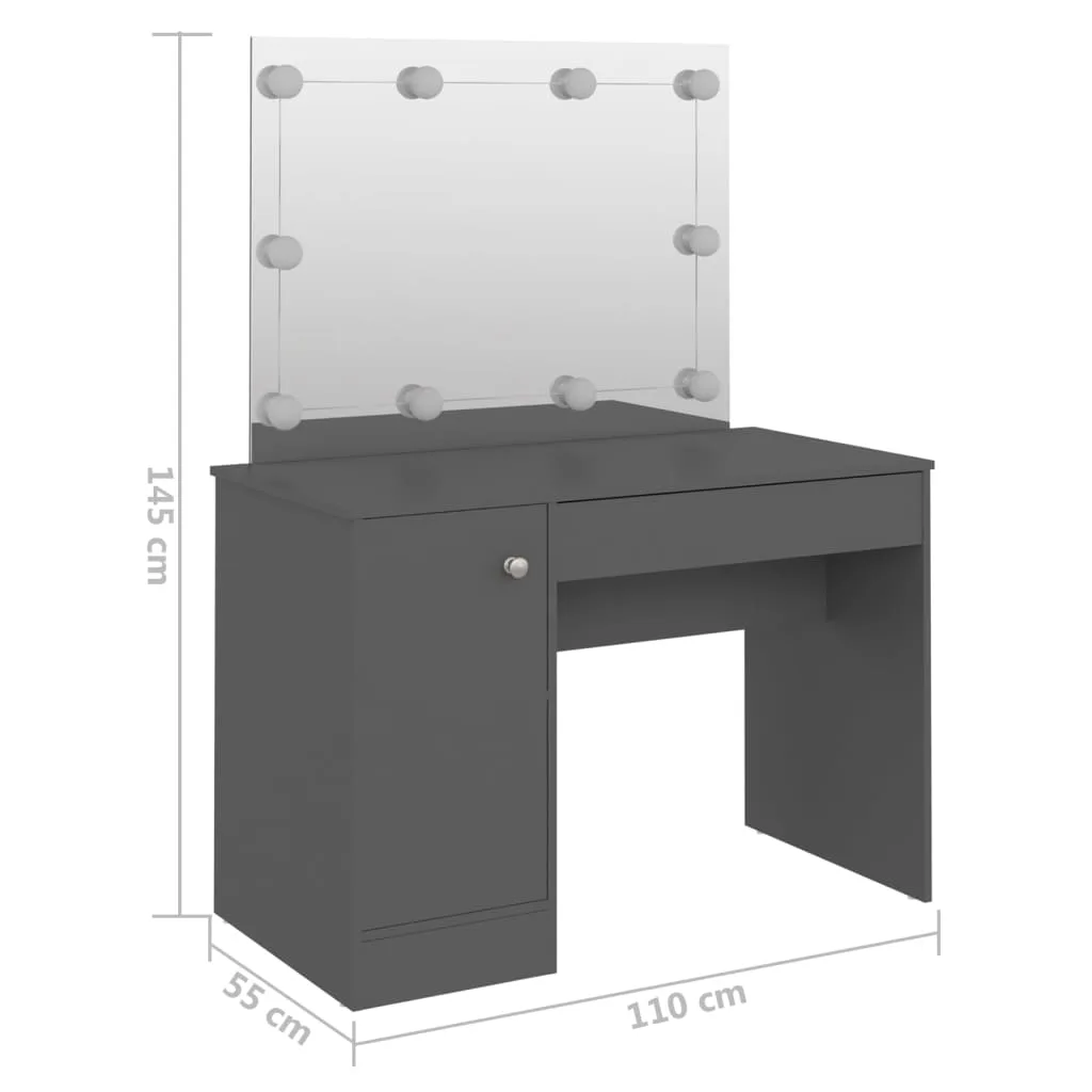 MDF-materjalist valmistatud tualettlaual on peen ja minimalistlik modernse stiiliga välimus. See pakub rohkelt ruumi meigitoodete jaoks ja hoiab kõike omal kohal. Lisaks sobib kaunis peegel meigi pealekandmiseks ja lisab lauaplaadile elegantse lihvi. Elegantsed LED-pirnid valgustavad ka teie ilu.