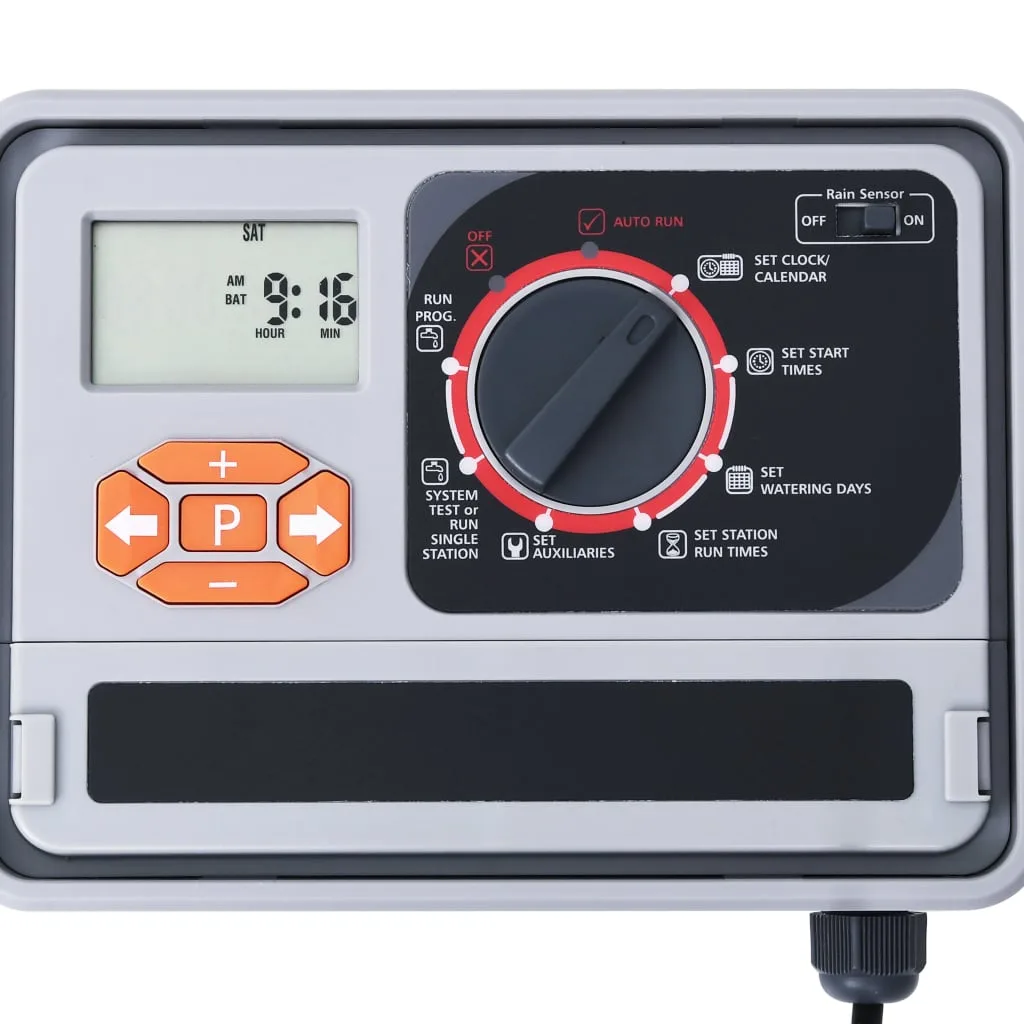 Kastmistaimeriga saab kontrollida 4, 6, 9 või 11 klappi. Kastmise juhtseadmel on 6 kastmisprogrammi ning igal programmil on algusaeg, lõpuaeg ja tööaeg. Kastmise graafikut saab määrata igaks nädalapäevaks kindla algus- ja lõpuajaga. Tööaeg võib olla 1 minutist 12 tunni ja 59 minutine. Aia kastmiskompuutril on vahelduvvooluga toiteallikas ning neid saab hõlpsalt kasutada pöörd- ja vajutatava nupuga, millega valitakse ja kinnitatakse andmeid. Vihma- või niiskusanduri (ei kuulu komplekti) ühendus võimaldab kastmise vahele jätta ning vihmastel päevadel vett säästa. Digitaalse kella ekraanil kuvamiseks ja eelmise parameetri mäletamiseks on vaja 9 V leelispatareid (ei kuulu komplekti).