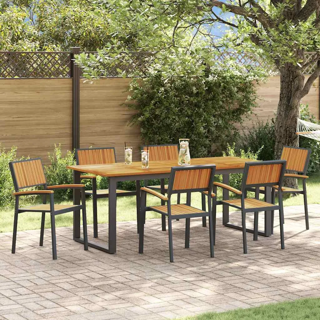 • Kvaliteetsed materjalid: See söögilaudade komplekt on valmistatud massiivsest akaatsiapuidust, mis on oma hämmastava tekstuuri ja iluga. Koos tugeva terasraamiga tagavad materjalid vastupidavuse, nii et see kestab igasugustes ilmastikutingimustes.