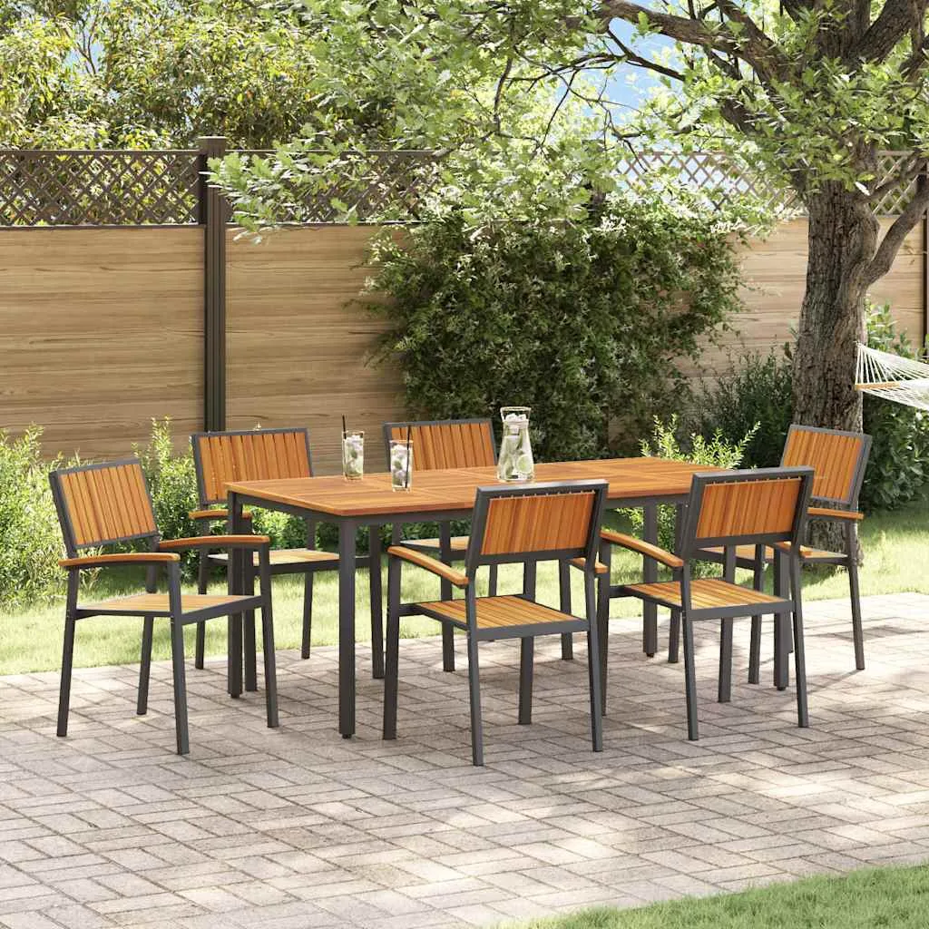 • Kestvad materjalid: See komplekt on tehtud kvaliteetsest massiivsest akaatsiapuidust, mis on tagasihoidliku pruunika värviga ja loomulikult vastupidav ilmastikule ja kulumisele, tehes selle ideaalseks välitingimustes kasutamiseks. Terasest detailid lisavad tuge ja stabiilsust, tagades, et su komplekt on iga päev stiilne.