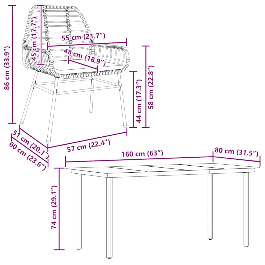 - Materjal: PE-rotang, pulbervärvitud teras