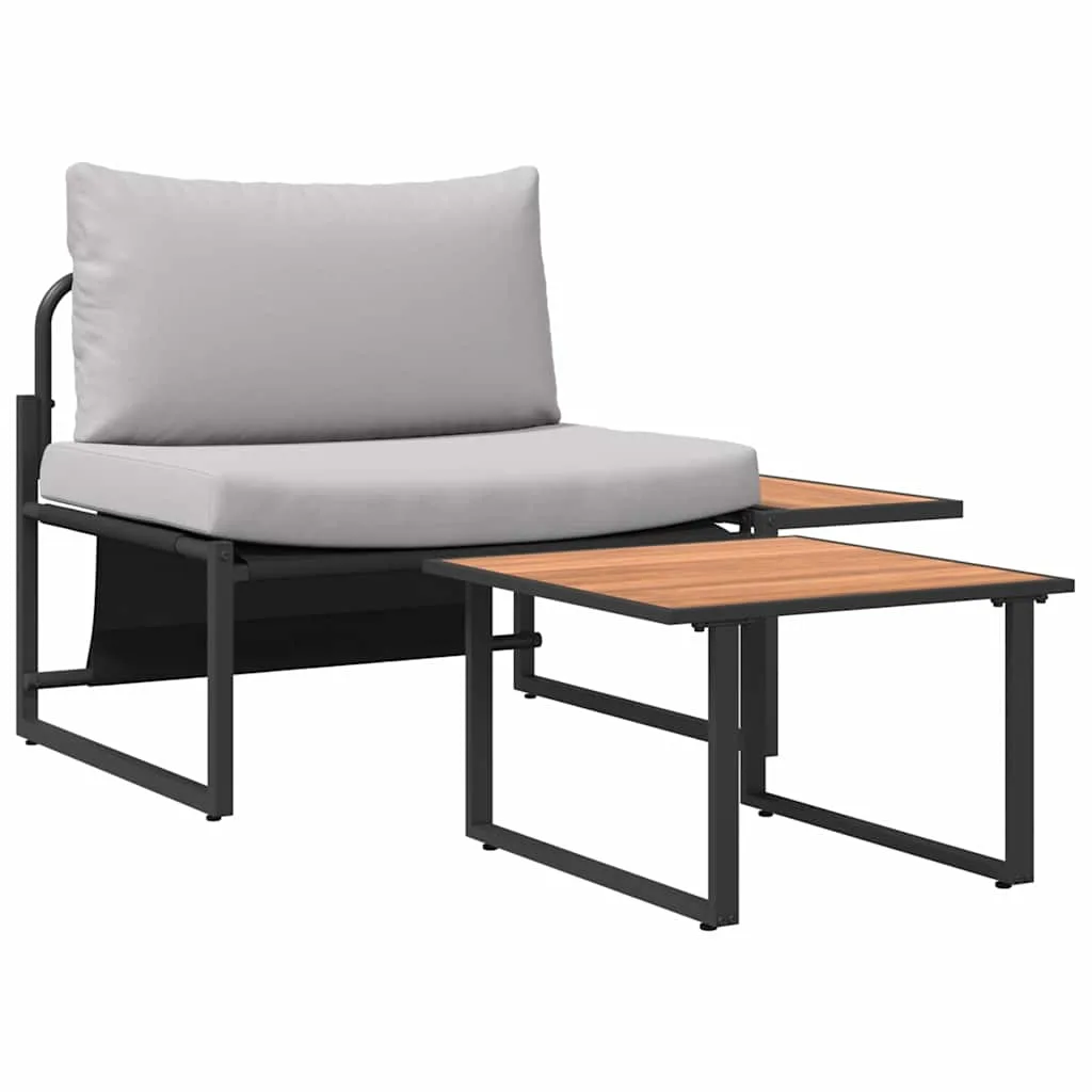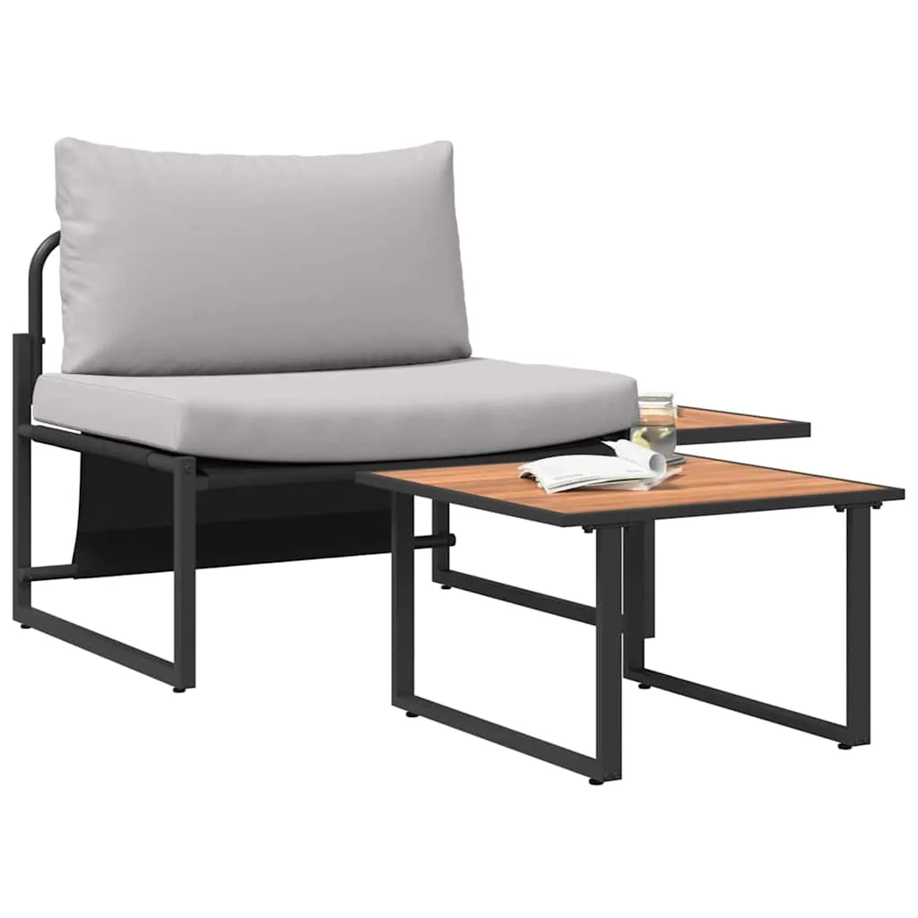 See aia diivanisett on modernse välistingimuste elegantsi tõeline näide oma lihtsa ja funktsionaalse disaini tõttu. Aedades ja terrassidel kasutamiseks mõeldud terasraam pakub jõudu, samas kui massiivne akaatsiapuit toob rustikaalse võtme sisse. Tumeda jalad lisavad sellele stiilset välimust, muutes selle silmapaistvaks igasugustes välistingimustes. Ideaalne suviste koosolekute korraldamiseks või rahulikeks õhtuteks, see komplekt toob mugavust ja stiili sinu välialale.