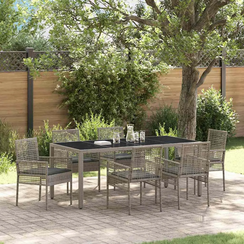 Modern Garden Dining Set on atraktiivne keskpunkt, mis tasakaalustab stiili ja funktsionaalsust kõigis välisruumides. Sujuvate joonte ja minimalistliku disainiga lisab see komplekt elegantsi mitmesuguste tegevuste jaoks – alates juhuslikest kokkusaamistest kuni ametlikeni al-fresco toidukordadeni. See sobib ideaalselt kaasaegsetesse aedadesse ja terrassidele, pakkudes piisavalt istekohti ning kutsuvat atmosfääri. Polürotangu ja karastatud klaasi hoolikalt loodud kombinatsioon peegeldab rafineeritust, samal ajal kui mugavad padjad tagavad kasuliku ja meeldiva söömiskogemuse.