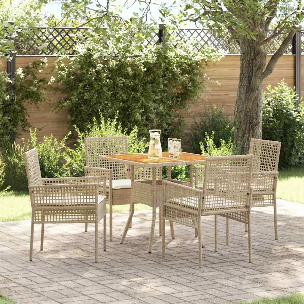 • Materjalid: See söögikomplekt on tehtud polürotangist, mis pakub šikki välimust ja on elektrit tõhus sademete eest. Polürotang on tugevalt vastupidav, et taluda ilmastikutingimusi, pikendades seeläbi selle eluiga. Koos sooja akaatsiapuust pinnaga loob see hubase ja loomuliku õhustiku, et nautida maitsvat einet.