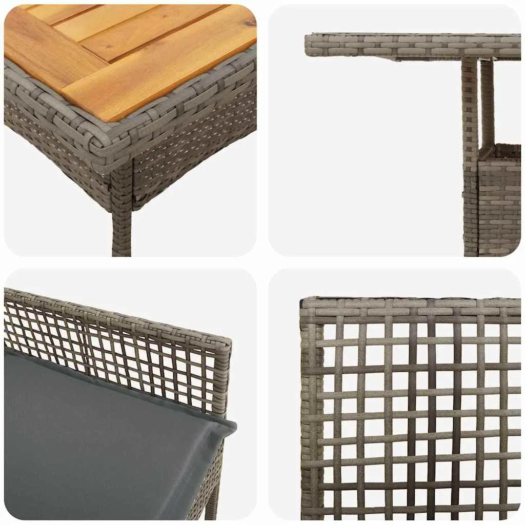 - Materjalid: See söögikomplekt on tehtud polürotangist, mis pakub šikki välimust ja on elektrit tõhus sademete eest. Polürotang on tugevalt vastupidav, et taluda ilmastikutingimusi, pikendades seeläbi selle eluiga. Koos sooja akaatsiapuust pinnaga loob see hubase ja loomuliku õhustiku, et nautida maitsvat einet.