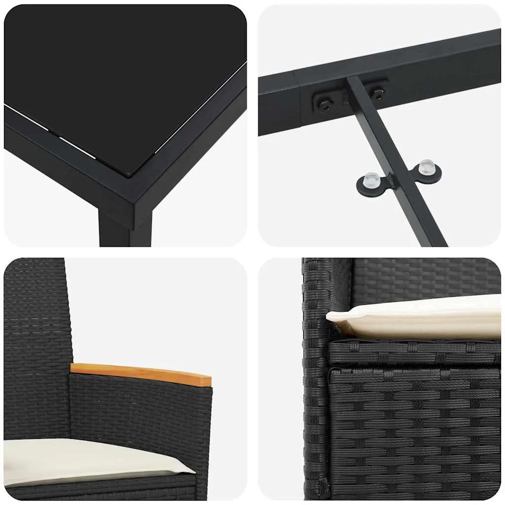 • Täielik koosseis: Kompaktne terasraam, polürotangi istekoht, puidust käetukid ja kitsenevad jalad, kõik need koostisosad loovad mugavuse ja vastupidavuse. Klaasist lauapind on kerge puhastada ja valmistab toidud välja.