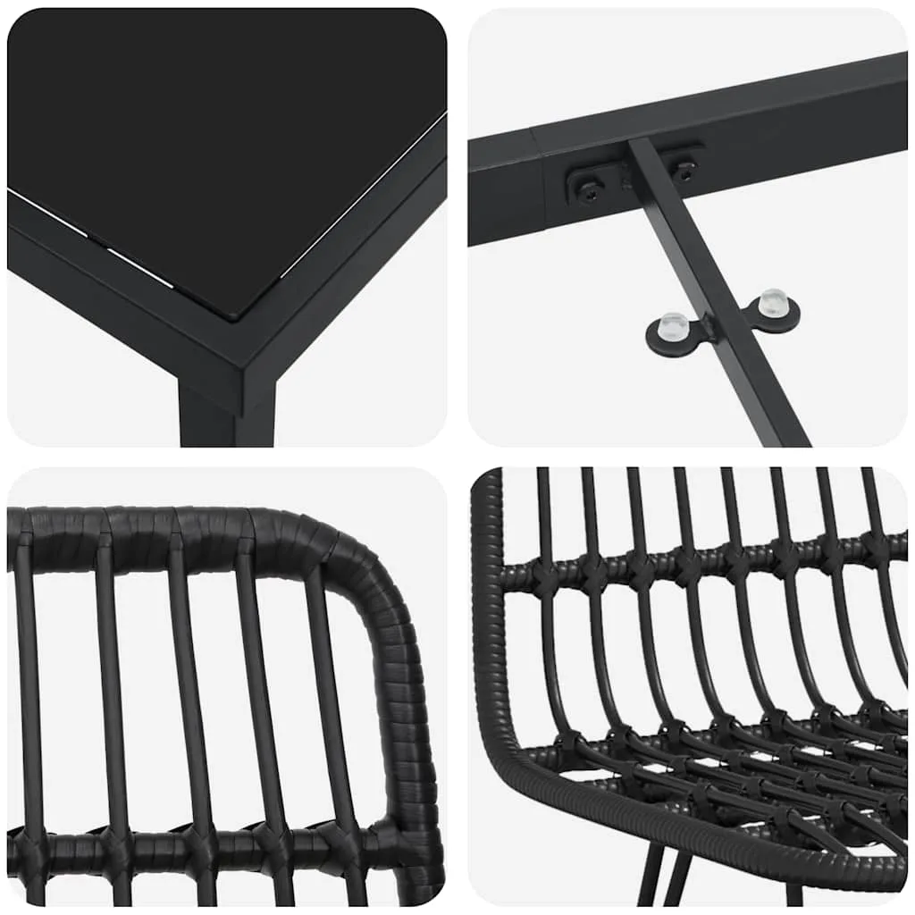• Külgkomponendid Toidukomplekt koosneb stiilsest lauast ja mugavast istmest, mis pakuvad ühtset välimust. Tugevad terasest jalad tagavad stabiilsuse. Iga detail on loodud mugavuse tagamiseks väliüritustel.