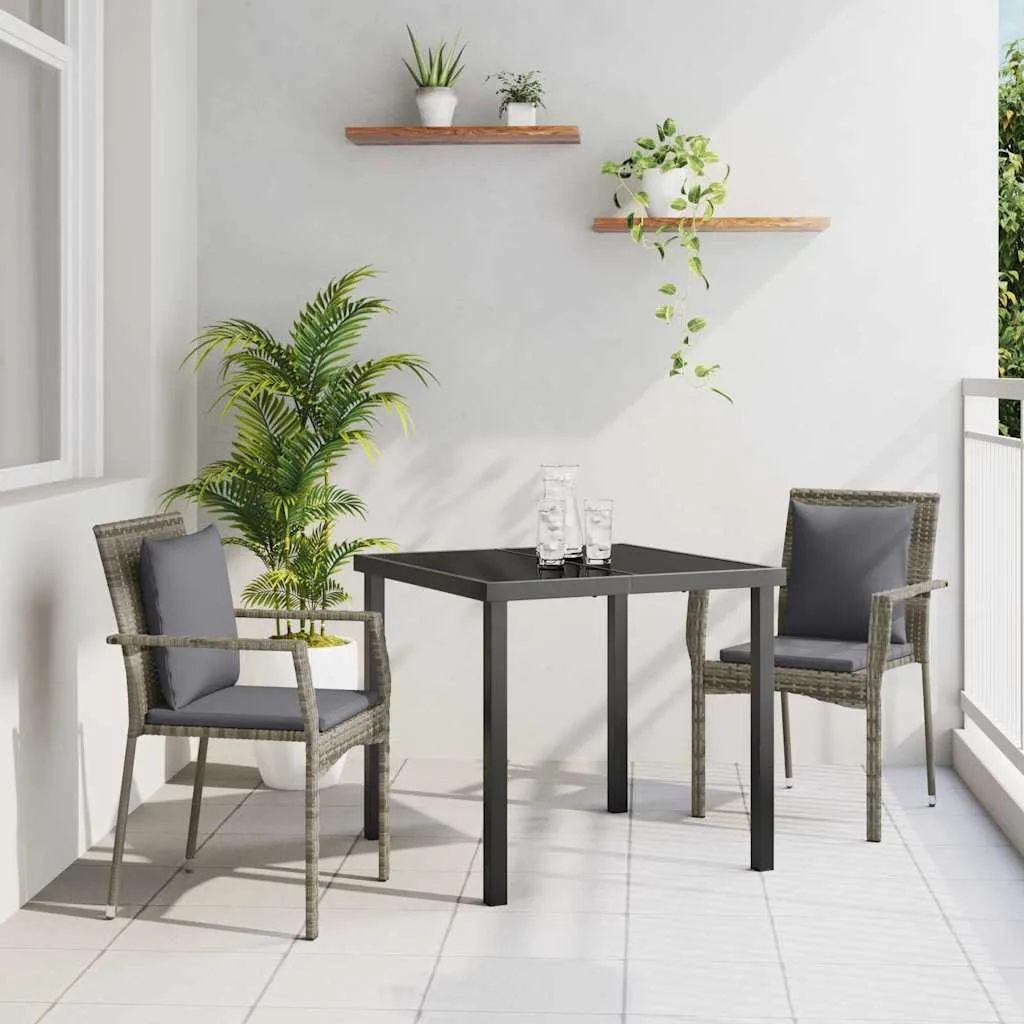 • Vastupidavad materjalid: Kvaliteetsest polürotangist ja pulbervärvitud terasest valmistatud einestamis-komplekt on loodud kauaks. Karastatud klaas annab šiki välimuse ja talub igapäevast kasutust. Polürotangi istmed ja käetuged pakuvad mugavat istumist ning pulbervärvitud jalad pakuvad stabiilsust.