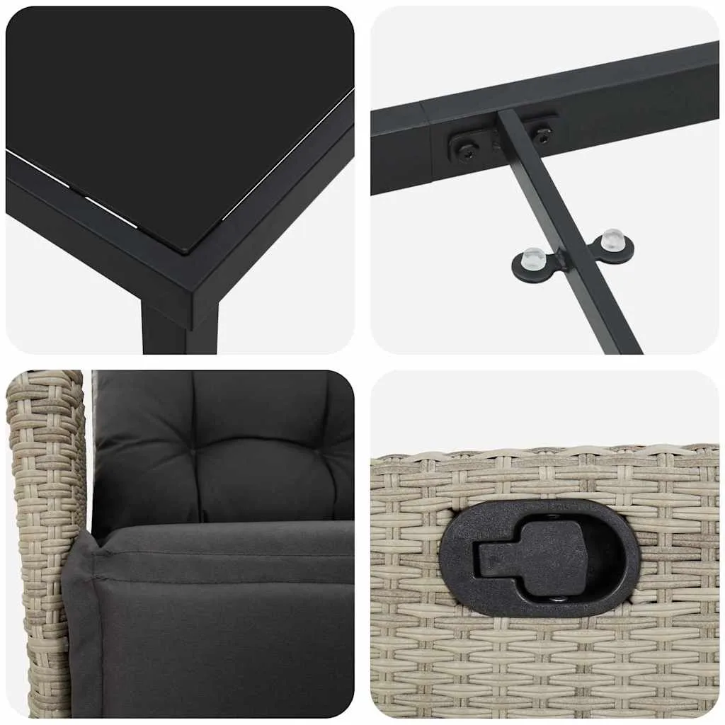 See reguleeritav aiamööbel on ideaalne kombinatsioon moodsa lihtsuse ja funktsionaalsuse vahel, puhas ja minimalistlik disain. See sobib suurepäraselt teie aia või terrassi jaoks, pakkudes stiili ja mugavust suvekogunemisteks. Ristkülikukujuline kuju ja tänapäevane disain sobivad igasuguse välise kujundusega, kutsudes külalisi nautima maitsvaid roogasid ja meeldivat vestlust looduse keskel. Iga detail on hoolikalt läbi mõeldud, et tagada sujuv üleminek välistingimustesse, pakkudes mugavaid reguleeritavaid funktsioone, mis muudavad kogemuse veelgi paremaks.