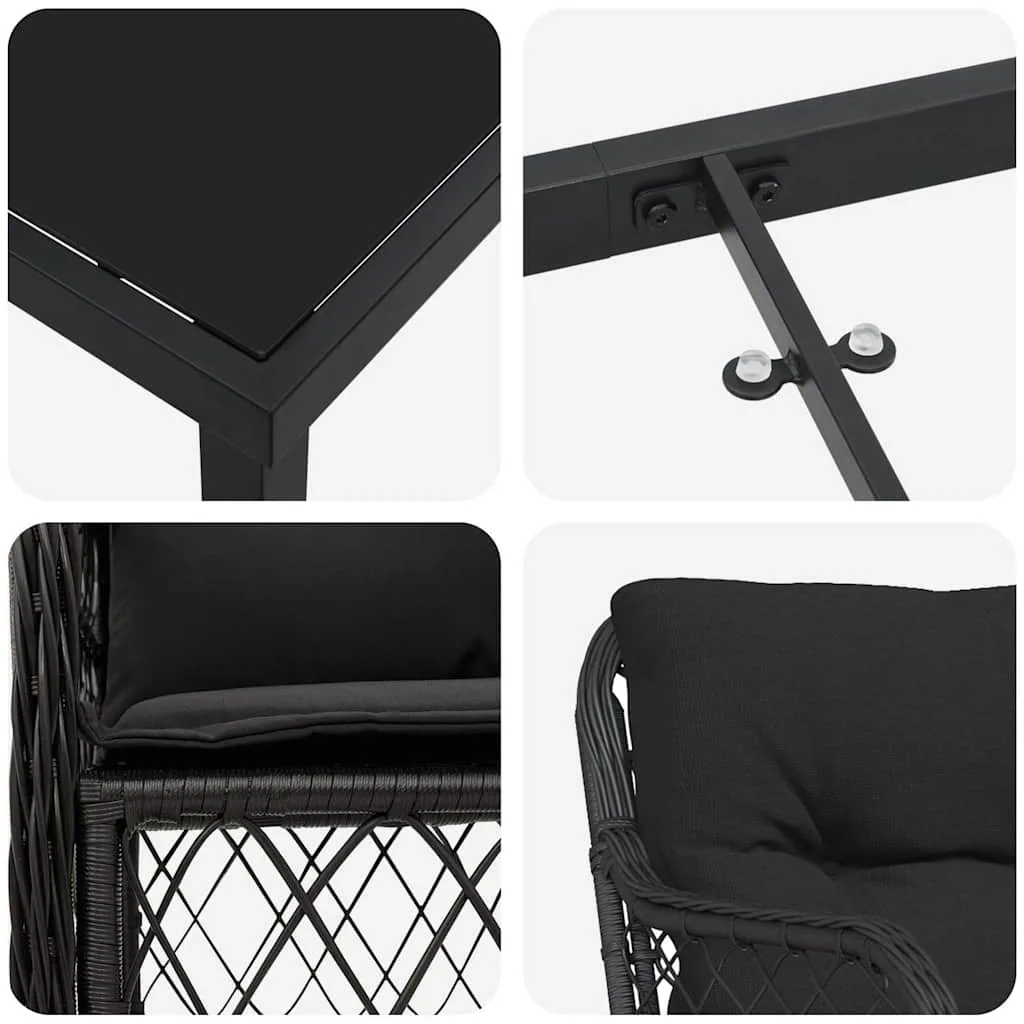 • Stiilne klaaspind: Elegantne karastatud klaasitabel, mis sobib musta raamiga, lisab teie söögikohale veel rohkem elegantsi ja mugavust. Puhastamine on lihtne, hoides teie välikohas mugavust ja esteetilisi omadusi.