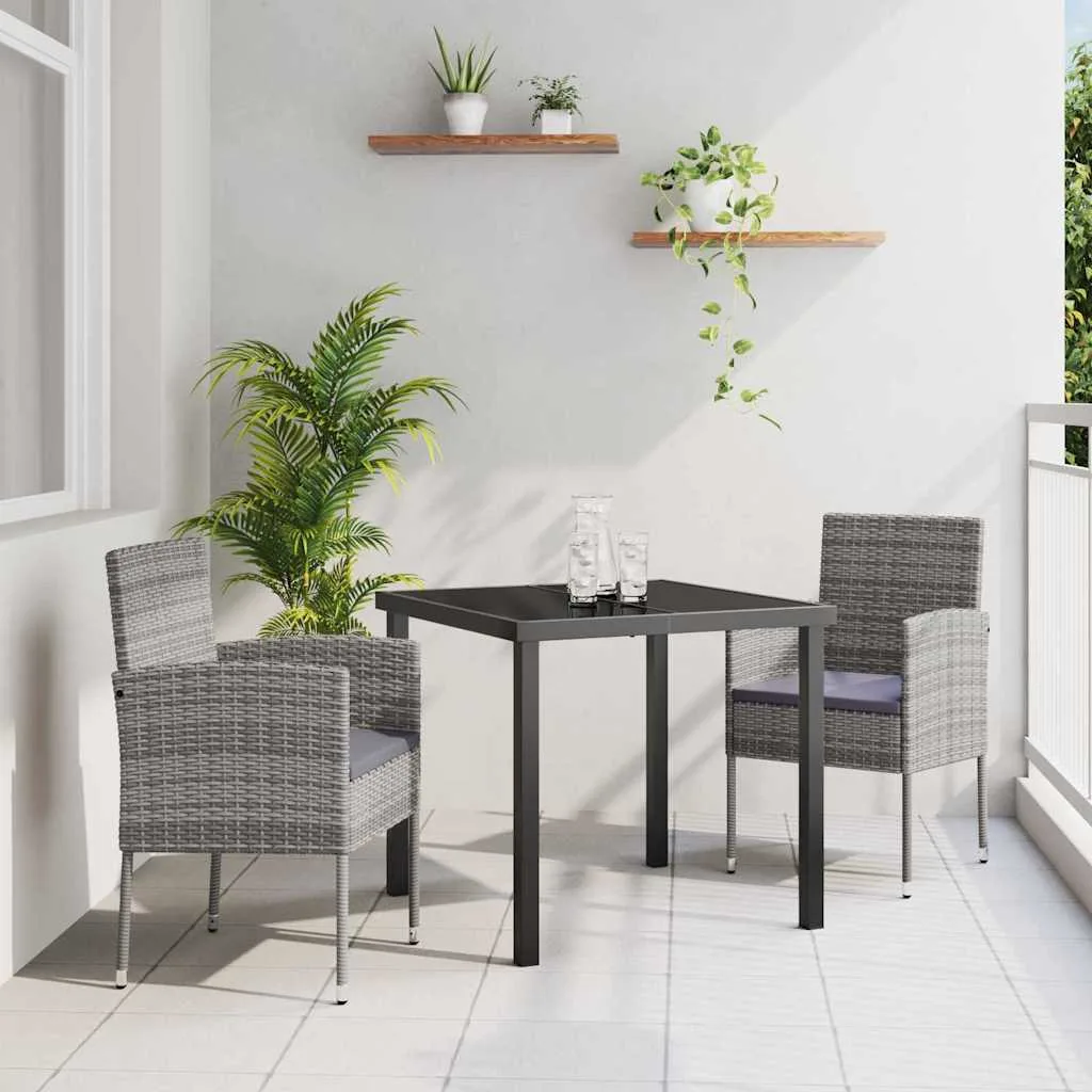 • Materjalid: Söögikomplekt koosneb polürotangist, mis on super vastupidav ja UV-kindel, ning karastatud klaasist. See kombinatsioon tagab stiilse ja vastupidava väljanägemise, mis ei pleegi ega kahjustu ilmastiku tõttu. Hoolikalt valitud materjalid hoiavad komplekti modernsena igal hooajal.