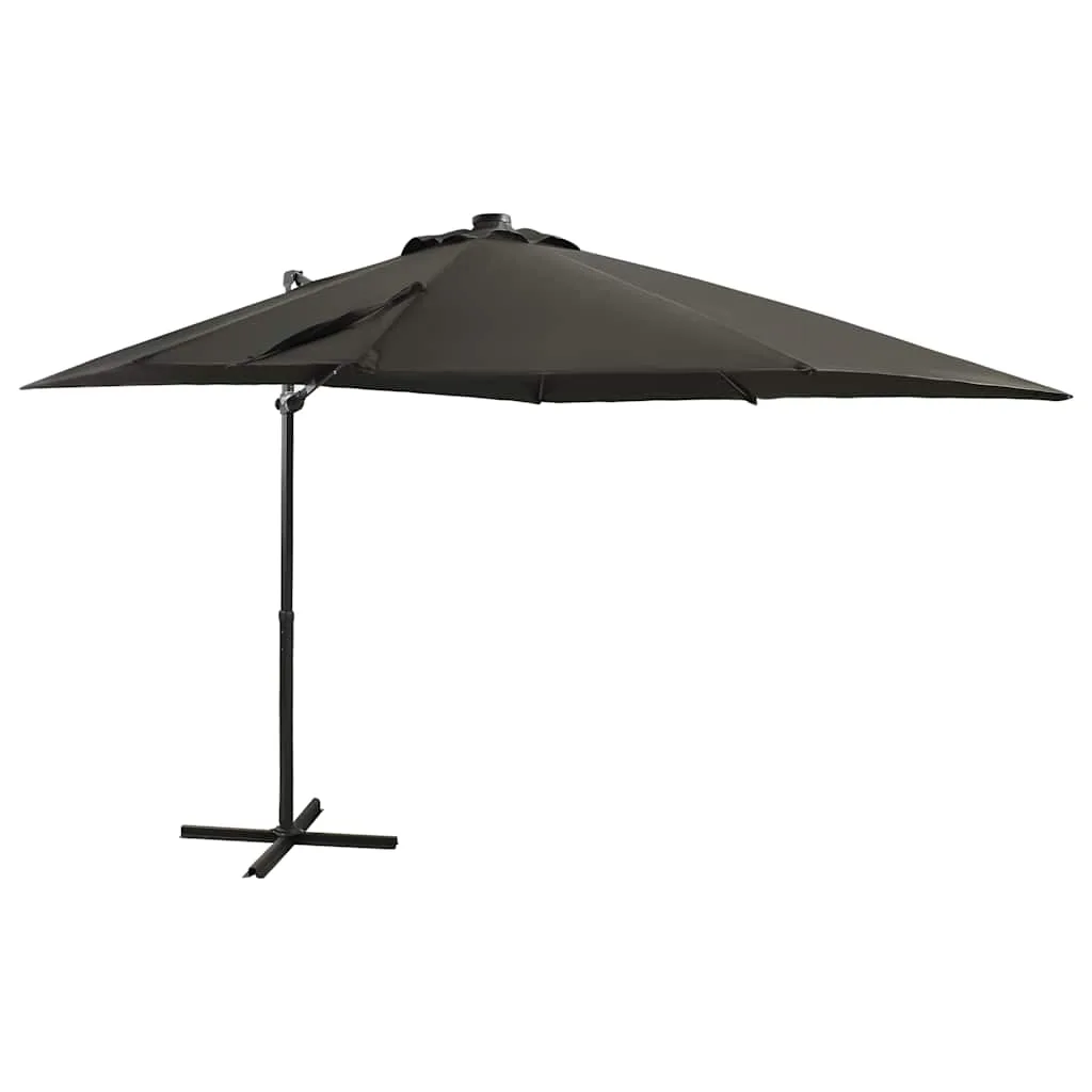 LED-tuledega konsooldisainiga aia päevavari sobib täiuslikult varju loomiseks ja enda kahjulike päiksekiirte eest kaitsmiseks. Kui päike loojub, valgustavad päikesepatareidega LED-tuled teie aeda.