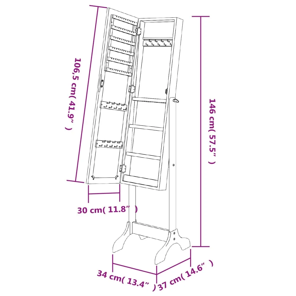 - Üldmõõtmed: 34 x 37 x 146 cm (L x S x K)