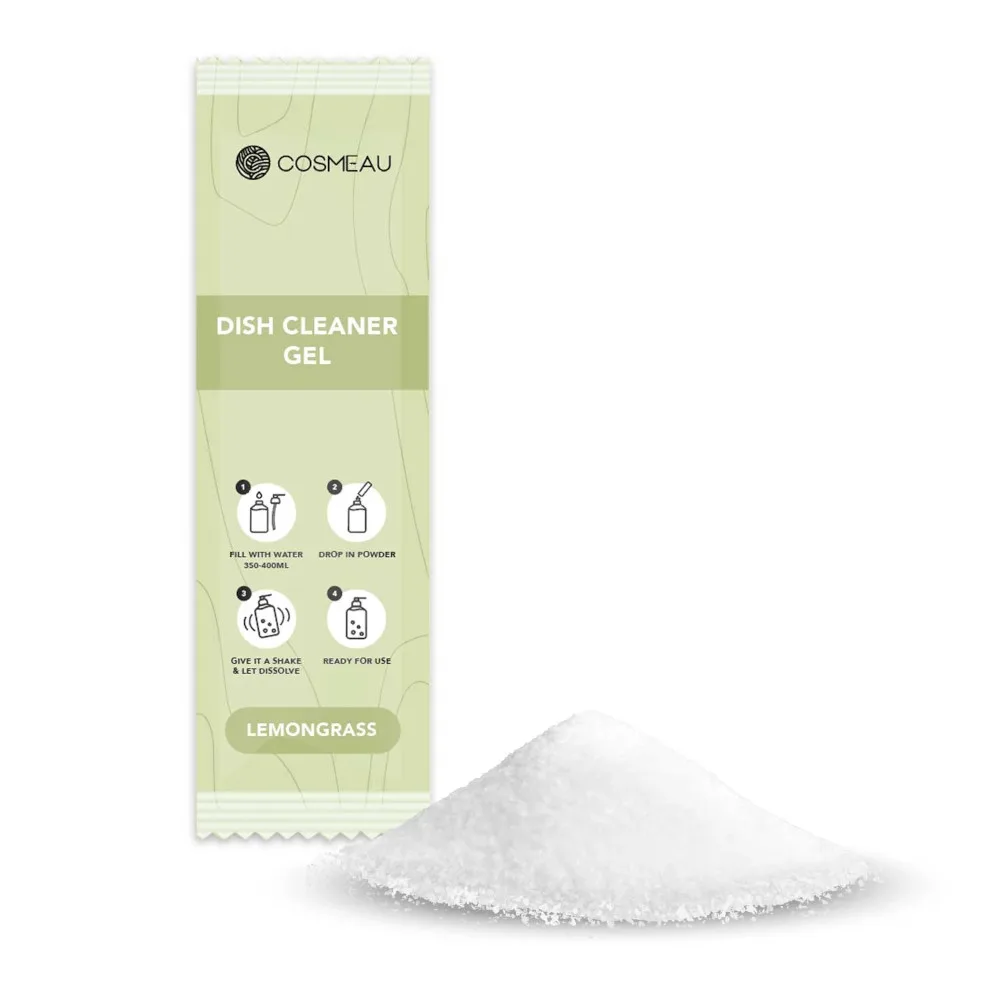 Sidrunheina lõhnaga pulbriline nõudepesuvahend, mis segatakse kraaniveega, et saada kuni 400 ml tõhusat pesuvahendit. Ideaalne kasutamiseks Cosmeau kauni mattklaasist dosaatoriga, kuid sobib ka igasse korduskasutatavasse pudelisse.