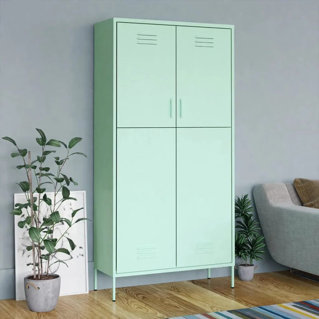 Riidekapp on valmistatud terasest, muutes selle vastupidavaks ja kergesti puhastatavaks. Kapil on 4 reguleeritavat riiulit ja suur riputusvardaga sahtel, mis pakuvad rohkelt hoiuruumi nii teie pikematele riietele kui ka muudele kokkupandud riietele või aksessuaaridele nagu kampsunid, teksad, mütsid, käekotid jne.