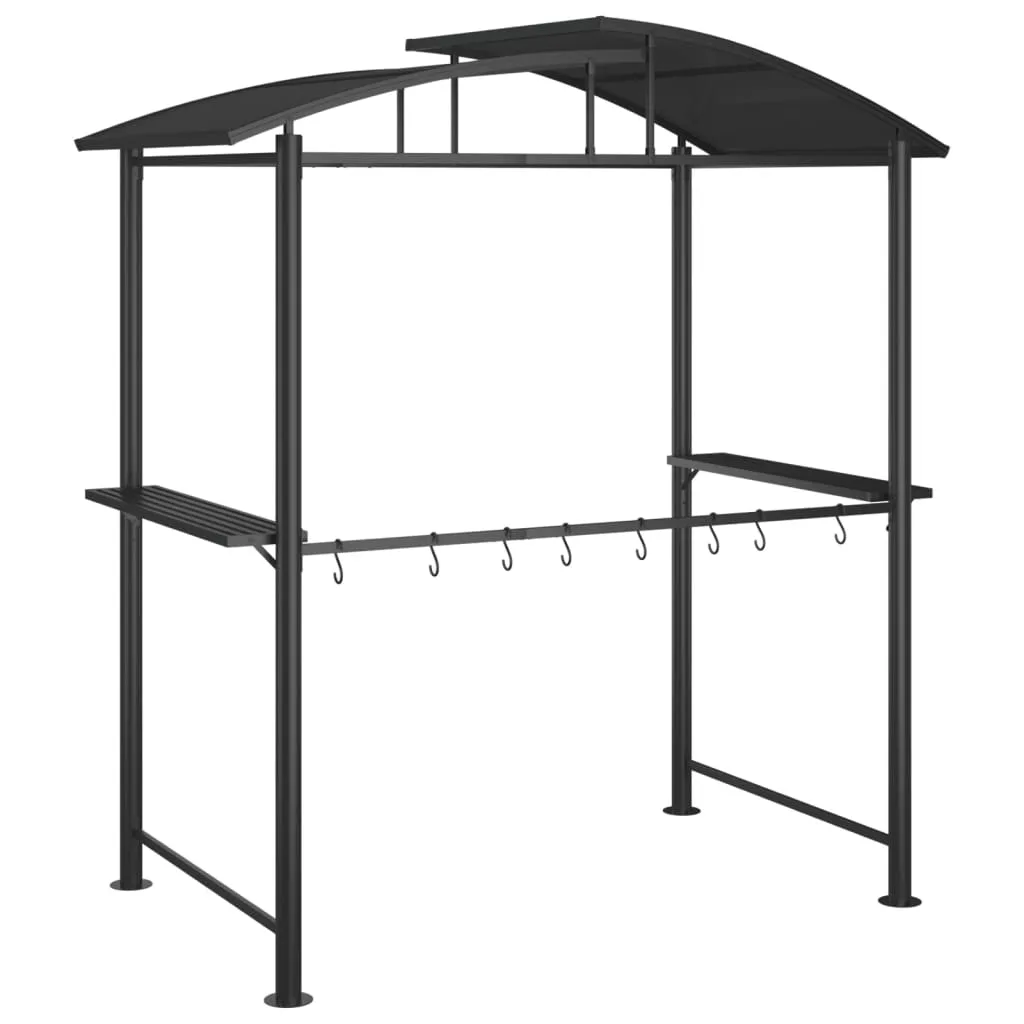 - Удобная конструкция: навес для гриля имеет 2 боковые полки, на которых можно разместить еду и напитки, а перекладина позволяет подвешивать аксессуары для гриля.