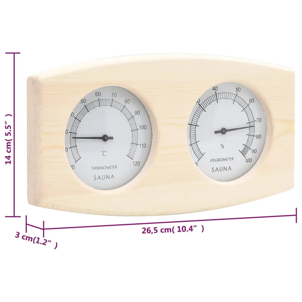 Puidust kaks ühes sauna termo-hügromeetri ja liivakella komplekt on vajalik tarvik igasse saunaruumi. See aitab teil mugavamalt sauna nautida.