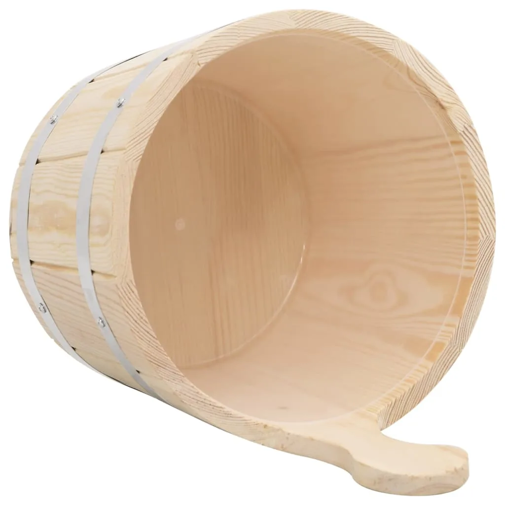 - Suur ämber: saunaämber mahutab umbes 5 l vett. Lisaks sisaldab see peaaegu nähtamatut, ent lekkekindlat plastvooderdust, mis ei lase täispuidust ämbril veest mädaneda, tagades seeläbi pikema kasutusea.