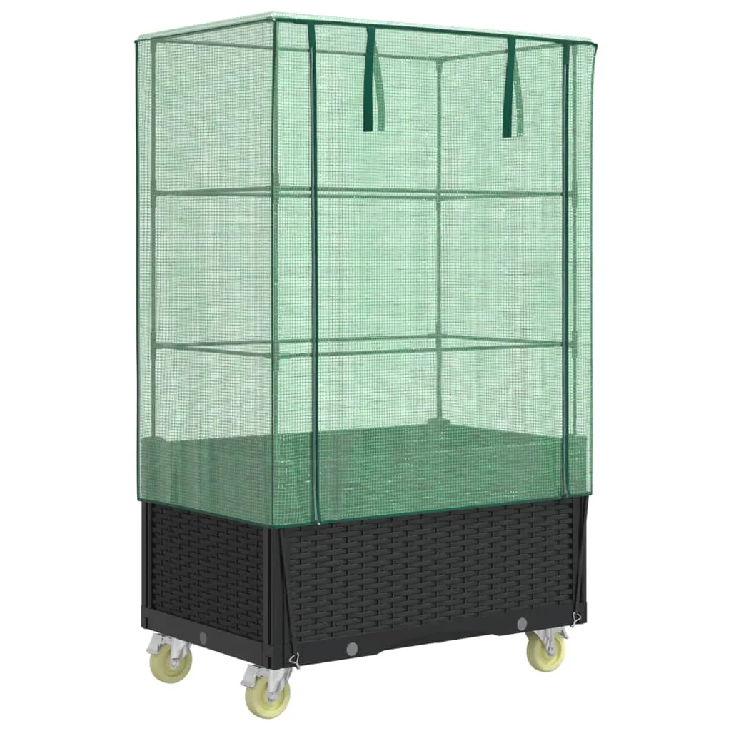 Rataste ja kasvuhoonekattega kõrgendatud peenar pakub oma tugeva tugiraamiga palju kasvuruumi.