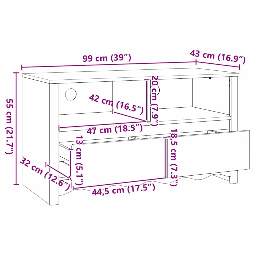• Massiivne männipuit või puidust konstruktsioon – TV-kapp on valmistatud tugevast männipuidust, mis on tuntud oma vastupidavuse poolest. See materjal kannab rasked TV-d ja seadmeid probleemideta. Samuti annab puit Sinu eluruumile sooja ja koduse ilme.
