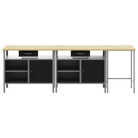 - Pulbervärvitud teras: Tööpink on valmistatud vastupidavast pulbervärvitud terasest, mis talub intensiivset kasutamist ja on kriimustuskindel. Viimistlus annab sellele nii tugeva kui ka ägeda välimuse, mistõttu sobib see igasse tööruumi kui originaalne ja praktiline lisand.