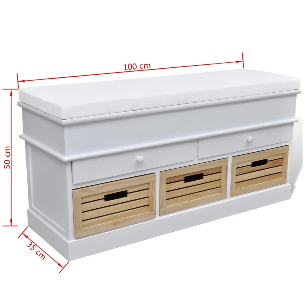 See stiilne hoiustuspink on sobilik mitmes kohas kasutamiseks, nagu esik, elutuba ja magamistuba. Padi on kaasas lisa istumismugavuseks. See pingiiste, kahe riiuli ja 3 alumise kastiga, on ka praktiline lahendus kergeks, korralikuks ja puhtaks hoiustamiseks. See on ideaalne jalanõude, kottide, raamatute, mänguasjade ja teiste esemete hoiustamiseks. Hoiustuspink on tõesti parim stiilse disaini ja funktsiooni kombinatsioon. Kuna see on tehtud kõrgkvaliteedilisest puitraamist, siis on see disainitud kasutamiseks mitmeks aastaks.