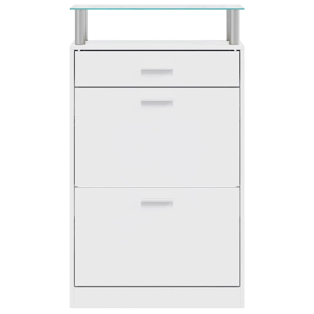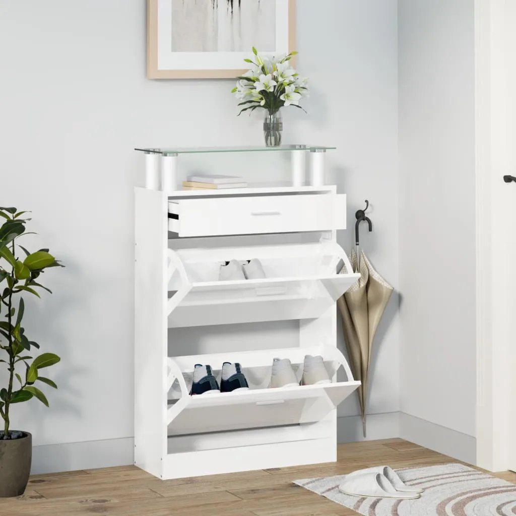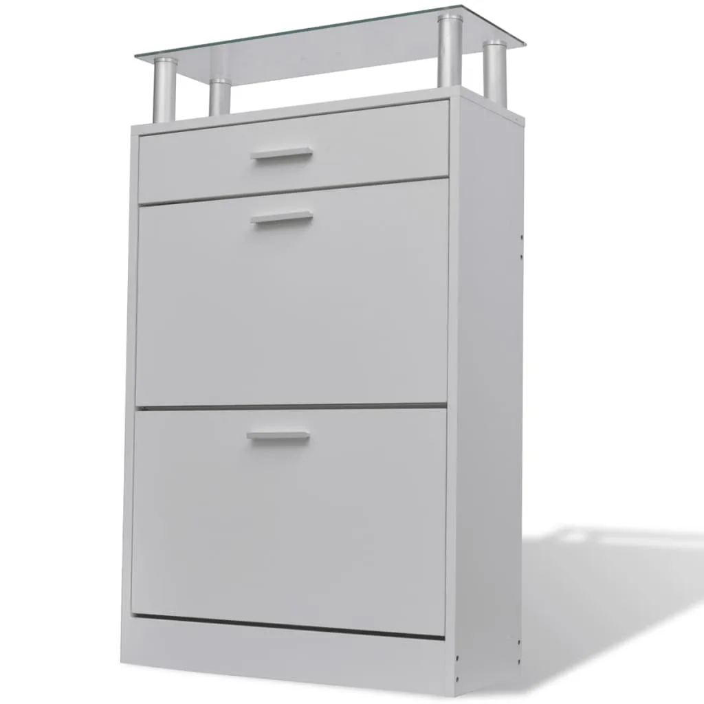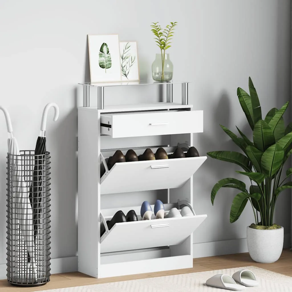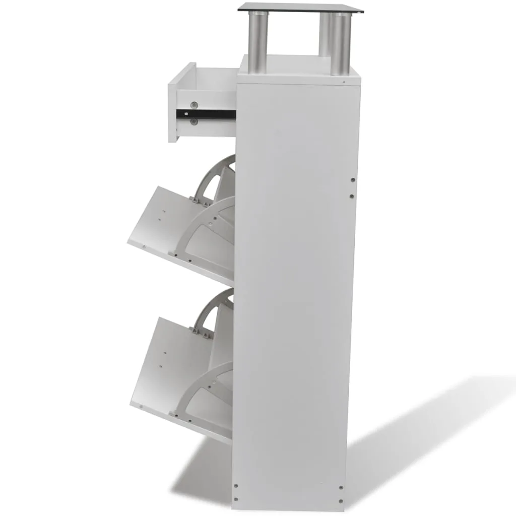 Посередині обох секцій є перегородка для кращої організації вашого взуття. Шафа для взуття може вмістити до 12 пар взуття одночасно та захистити їх від пилу. Скляну полицю можна використовувати для розміщення декоративних предметів, а шухляду — для зберігання дрібних предметів, таких як ключі, лопатки для взуття, підошви тощо.