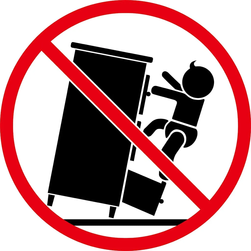 - Попередження: Щоб запобігти перекиданню, виріб слід використовувати з настінним кріпленням, що входить до комплекту.