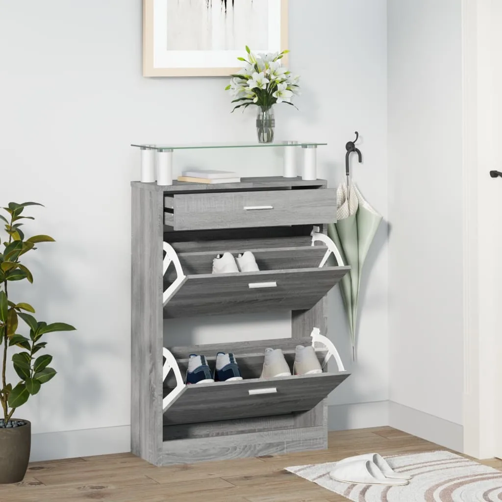 Дерев'яна шафа для взуття має шухляду, скляну полицю, два місткі відділення та стильний дизайн. Вам більше не доведеться спотикатися об взуття в коридорі — шафа допоможе зберегти підлогу чистою.
