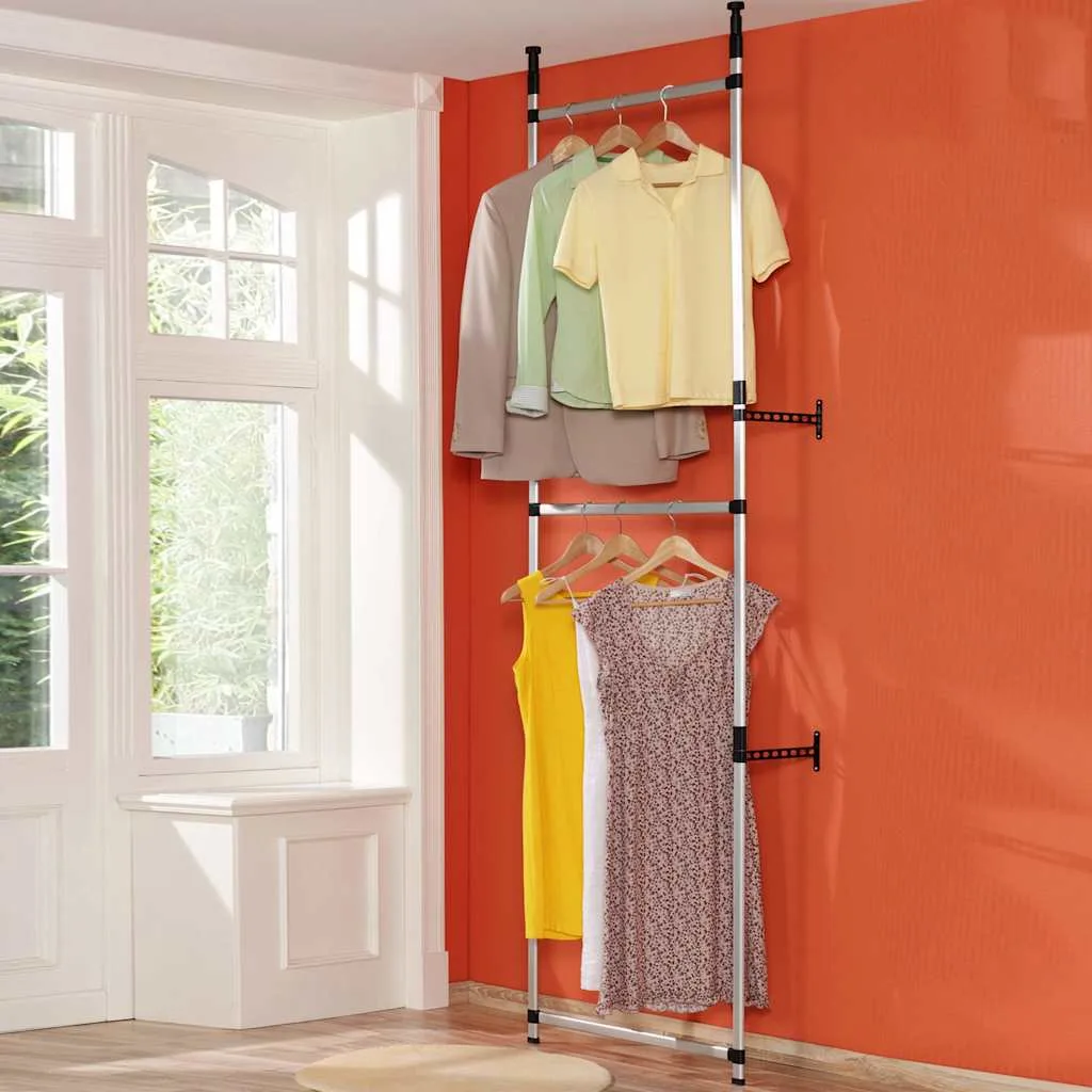 Телескопічна гардеробна система виготовлена з алюмінію, що робить її міцною та стійкою. Полиця для зберігання регулюється для різних просторів завдяки телескопічній системі та регульованій висоті. Це унікальний спосіб організувати вашу шафу.