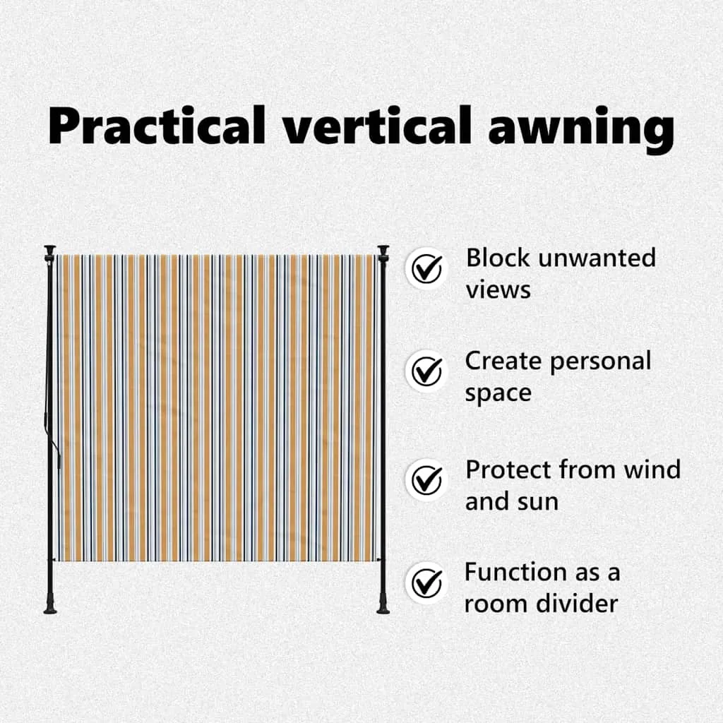 Kvaliteetsest PA-kattega kangast valmistatud ruloo on pleekimiskindel ja blokeerib päikesevalgust, lastes samal ajal õhku läbi. Seda on lihtne kokku ja lahti rullida käsivändaga juhitava süsteemi abil. Vertikaalse ruloo komplekti kuulub kaks püstiseisvat posti, mille kõrgust on võimalik reguleerida 225 - 275 cm vahel. See sobitub enamuste laekõrgustega ja tagab lihtsa paigalduse.